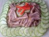 Рецепт данной, довольно острой, но очень и очень вкусной закуски из языка можно отнести к блюдам грузинской кухни и вкус закуска имеет характерный для кухни Кавказа, так что блюдо очень подойдет для всех ценителей как самой кухни, так и любых блюд из языка.Требуемые для приготовления продукты: приблизительно полтора килограмма говяжьего языка (две штуки), 250 граммов репчатого лука, четыре лавровых листочка, две столовых ложки сливочного масла, две столовых ложки оливкового масла, одна столовая ложка муки, 150-200 граммов грецких орехов, половинка пучка зеленой кинзы, одна чайная ложка молотого кориандра, одна чайная ложка аджики, одна чайная ложка хмели-сунели, одна чайная ложка соли, три зубчика чеснока, четыре-пять столовых ложек горячей воды и четыре столовых ложки гранатовых зерен.