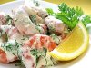 Смешайте все ингредиенты, по вкусу посолите и поперчите. Заправлять салат нужно непосредственно перед подачей. Можно смешать сметану и майонез, можно сделать заправку только из майонеза или из сметаны. В сметанную заправку для пикантности рекомендуется добавить немного готовой горчицы или молотого перчика. Приятного аппетита!