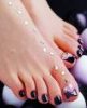 Бесцветные стразы хорошо смотрятся на любом лаке для ногтей, а вот с цветными нужно быть осторожнее. Лучше, если цвет страз будет совпадать с одним из цветов рисунка на ногтях (если это роспись) или контрастировал с цветом ногтей.