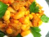 Лук, сельдерей и морковь нарезаем небольшими кубиками, обжариваем в масле вместе с молотым чили, орегано и зирой. Когда овощи станут мягкими, кладем чеснок и продолжаем обжаривать еще с минуту.
