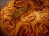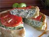 Тесто раскатать в форме прямоугольника и на один край выложить вначале творожную смесь, а сверху шпинат и помидоры и завернуть тесто рулетом, а затем сформировать из него кольцо и хорошо скрепить концы теста. Рулет-кольцо выложить на смазанный маслом противень и щедро смазать смесью оливкового масла и измельченного чеснока, после чего выпекать в горячей духовке при 200 градусах примерно 25-30 минут.