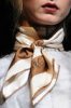 Если вы впервые решили приобрести для себя такой незаменимый аксессуар, как шейный платок, тогда стилисты рекомендуют придерживаться какого-то одного определенного стиля. Если вести речь об осеннем времени, тогда стоит заметить, что в данный период особенно актуальным может стать вопрос, как повязать шейный платок, чтобы он сочетался с верхней одеждой. В подобном случае очень оригинально будет смотреться платок, который повязан «задом наперед», при этом, концы которого будут скрепляться сверху незаметным бантиком. Зачастую, небольшие и довольно легкие платки, рекомендуют носить, при этом, повязав их кругом шеи, а после передвинув узел в сторону. Данный практичный способ подойдет тем женщинам, у которых изящная, тонкая и длинная шея. Очень большие оригинальные платки, которые имеют квадратную форму, можно носить по-разному - можно уложить полотно косынкой и накинуть себе на плечи. Также можно закрепить платок плотным узлом, скрутить жгутом или даже перевязать одного цвета платок вместе с контрастирующим вторым подобным аксессуаром. Чаще всего большие платки девушки обматывают вокруг шеи, а завязанные концы прячут. Еще одним достаточно интересным способом подвязывания, а также ношения платков является следующий – концы платка завязывают между собой, а в качестве скрепления используют специализированные декоративные клипсы, с помощью которых, как правило, можно стильно задрапировать всю поверхность платка, а после закрепить. В холодное время года особенно популярны большие палантины. Их можно повязать по подобию восточных шалей. Если материал палантина очень плотный и теплый, тогда можно использовать аксессуар в виде накидки. Плотные шали и платки из шелка больших размеров можно фиксировать традиционным галстучным узлом, но, при этом, помнить, что опускать подобный узел всегда необходимо максимально низко. Такой вариант будет достойно сочетаться вместе с классической блузкой, а также с небольшим украшением, которое будет висеть на тонкой цепочке.