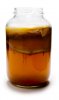 Когда чайный гриб начнет принимать знакомые очертания, вы можете его пересадить на «постоянное место жительства» в трехлитровую банку из стекла. Но вначале хорошо бы его опустить в яблочный уксус. Чайный гриб, выращенный самостоятельно, готов!