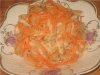 1) Залейте желатин кипяченой прохладной водой и дайте ему набухнуть. После этого слейте воду, и посредством водяной бани распустите весь желатин. Далее, введите его в майонез, перемешайте и выложите треть всей массы в форму или лоток ровным слоем. Уберите в холодильник охладиться.
