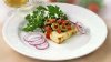 При подаче на стол рулет порежьте на небольшие порции и выложите их на посыпанные солью огурцы.