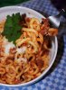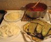 Приготовление. Баклажан нарезают пластинами толщиной 1 см, посыпают солью, оставляют на полчаса для того, чтобы соль вытянула лишнюю воду. Отдельно друг от друга обжаривают и откладывают: сладкий перец, баклажан, цуккини. Лук очищают, нарезают полукольцами, обжаривают в масле на среднем огне до мягкости, добавляют мелко нарезанный сельдерей, через две минуты всыпают острый перчик, мелко рубленый чеснок, раздавленный ножом кориандр и зиру. Почти через минуту добавляют помидоры, чуть тушат на сильном огне, добавляют сахар (если надо). Овощи складывают в сотейник, перекладывают помидоры, добавляют лавровый лист, перец горошком, шалфей, щепотку тимьяна, солят, перемешивают, накрывают крышкой и готовят на слабом огне 10-15 минут. Подают тёплым или холодным, в качестве основного блюда (с картофелем, рисом или просто с французским хлебом) или как гарнир.