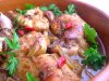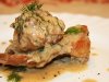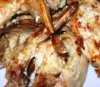 Хорошо обмазываем кролика солью и перцем со всех сторон каждый кусок, делаем глубокие разрезы и начиняем заранее нарезанными кусочками чеснока, даем промариноваться мясу около полчаса - час.