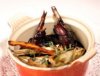 Разводим уксус в холодной воде, чтобы вода несильно пахла уксусом и кладем в воду вымачивать кролика, примерно на 3 часа, чтобы вода его накрывала. Вытаскиваем кролика из воды, обсушиваем либо вытираем насухо полотенцем, рубим или нарезаем на порционные куски (можно нарезать на большие куски), достаем сердце и печень, остальное выбрасываем.