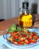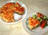 Для приготовления этого блюда нам потребуется 4 отбивные из свиной шейки, 100 грамм ветчины, 150 грамм свежих шампиньонов, 1 большой мясистый помидор, веточки тимьяна (можно использовать сухой тимьян), 3 – 4 зубчика чеснока, сок половинки лимона, соль, черный молотый перец, растительное масло.По кромке мяса сделать неглубокие надрезы, слегка отбить и обжарить в небольшом количестве растительного масла до румяной корочки. Ветчину нарезать мелкими кубиками, порубить дольки чеснока. С помидора снять кожицу (чтобы она легче снималась, помидор нужно обдать кипятком) и тоже нарезать небольшими кубиками. Веточки тимьяна вымыть и оборвать с них листики. Грибы промыть, нарезать не очень тонкими ломтиками и выдавить на них сок лимона (чтобы они не потемнели). Ветчину, грибы, резаный чеснок и помидор перемешать, посолить, поперчить, добавить листочки тимьяна.