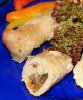 Каждую отбивную переложить на большой кусок фольги. Поверх отбивных разложить смесь и все аккуратно завернуть в фольгу. Отбивные запекаются в духовке на среднем огне 30 минут. Лучше их положить не на решетку, а на противень, чтобы равномерно пропекались.