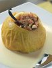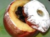 2. Перемешайте молотый фундук с ягодным вареньем, изюмом и наполните этой смесью яблоки.