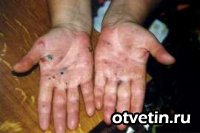 Дерматит – кожное заболевание различной природы. Распознать болезнь можно по красным высыпаниям на теле: на руках, на спине, животе, лице и др. Кожа в этих местах отличается отечностью и припухлостью, бывает с повышением температуры. Иногда на покрасневшей коже появляются мелкие пузырьки, наполненные прозрачной жидкостью. Места покраснений страшно зудят и чешутся. Если человек начинает всё-таки их расчесывать, то пузырьки лопаются и кожа покрывается липкой жидкостью, которая засыхая образует корку. Расчёсывание может привести к образованию язв на коже. Воспаление заканчивается тем, что кожа приобретает тёмно-красную окраску и сильно шелушится. А длительность воспалительного процесса зависит от длительности и силы действующего раздражения, состояния нервной системы организма человека.