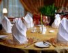Кроме праздничного меню и убранства комнаты нужно продумать и сервировку стола, за которым соберутся ваши гости. Основное условие, о котором нельзя забывать, сервируя праздничный стол – это соответствие предметов сервировки подготовленному меню.Скатерть для торжественных приемов всегда должна быть льняная или полотняная. Синтетические скатерти и пластиковая клеенка поверх полотняной скатерти неуместны. Под скатерть можно подложить мягкую светлую ткань, тогда скатерть будет лежать ровнее, а стук тарелок и столовых приборов приглушится. Бумажные салфетки ставят на стол в красивых вазочках в нескольких местах, на тарелки или возле них раскладывать такие салфетки не принято.