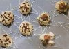 Взбейте белки в крепкую пену, добавьте в них оставшийся сахар. Миндальную массу выложите по ложкам в белки, аккуратно перемешайте до однородной массы. Смажьте противень сливочным маслом (1 ст. л.) и присыпьте мукой (1 ст. л.). Миндальную массу выложите кондитерским шприцем или чайной ложкой на противень, чтобы получились маленькие печенья и дайте постоять часа два на столе. Разогрейте духовку до 150 градусов С. Противень поставьте в духовку на один час (печенье должно скорее подсушиться, нежели испечься). Присыпьте готовое печенье сахарной пудрой.