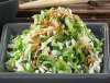 Теперь, когда все готово, нужно лишь разложить салат по порционным бокалам или креманкам, и залить его бульоном. Поставьте все порции в холодильник остывать.