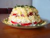 - сложите все перечисленные ингредиенты, добавьте к ним рис и зеленый горошек, посолите и поперчите по своему вкусу, и заправьте салат майонезом.