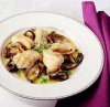 Способ приготовления. Очистите и мелко нарежьте лук-шалот. Нарежьте сельдерей кубиками. Растопите в сковороде сливочное масло, добавьте оливковое масло. Обжарьте лук и сельдерей. Обваляйте куриное филе в муке, посолите, обжарьте с двух сторон до золотистого состояния. Добавьте бренди, выпарите на сильном огне. Огонь убавьте, добавьте сливки, розовый перец и тушите курицу 10-15 минут. Полейте готовое филе соусом и подавайте.