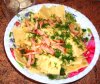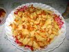 Затем раскатать тесто в пласт примерно в полсантиметра толщиной и нарезать на ромбики. Потом отварить в воде, добавив немного соли. Варить минут пять – десять, далее вытащить шумовкой в глубокую тарелочку и полить шкварочками с луком.