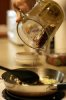 Придерживайте окорок специальной вилкой. Тонким гибким ножом срежьте несколько ломтиков с тонкой стороны. Вырежьте маленький треугольный кусок в узкой части рульки. Затем сделайте вертикальные разрезы через равные промежутки вдоль всего окорока, прорезая мясо до кости. Отделите ножом ломтики от кости.