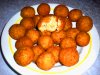 Слить сироп из ананасов. Перец нарезать кусочками и смешать с ананасами. Кусок мяса очистить от пленок и жира и нарезать поперек волокон тоненькими пластинками. Немного отбить. Взбить яйца. Крахмал смешать с солью и в этой смеси обвалять каждый ломтик мяса. Затем обмакнуть в яйцо и скатать шариком. Снова обвалять в крахмале. Разогреть растительное масло в сковородке вок, и небольшими партиями обжарить мясные шарики. Вынуть шумовкой и дать стечь маслу. Положить в кипящее масло перец и ананасы, и жарить 2 минуты на сильном огне, постоянно помешивая. Вынуть из сковородки и переложить к мясу.