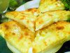 Далее начинаем формировать хачапури. Для этого тесто поделим на пять частей. Каждую часть скатать в шарик и затем раскатать лепешку, на середину которой положить начиночку. Затем края теста защипать так, чтобы образовалась «лодочка». После этого хачапури промазать взбитым яичком и отправить в горячую печь на тридцать минут, температура печи – двести градусов. За несколько минут до готовности в хачапури вбить яйцо, как только белок побелеет, то хачапури достать из духовки. При подаче положить на серединку хачапури сливочное масло и подавать желательно горячими. Приятного аппетита.