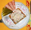 Теперь дело за украшением тигренка. Мелко-мелко порубить несколько маслин. Из натертого белка сделать тигренку щечки и глазки. Из маслин – ресницы и нос. Из полосочек огурца сделать тоненькие кошачьи зрачки. Из кружочка колбасы сделать рот. Из мелко порезанных маслин сделать полоски на мордочке, а усы можно сделать из тонюсеньких полосочек репчатого лука или лука-порея или вырезать из толстой капустной жилки. Фантазия подскажет что чем можно заменить. Такой красавец - тигренок обязательно произведет фурор за новогодним столом!