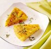 Взбейте яйца с пармезаном, вылейте в сковороду, аккуратно перемешайте с зеленью и поджарьте омлет на среднем огне. Снимите готовый омлет со сковороды. Подогрейте мясной бульон.