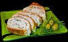Сыр в этом рецепте натирать не нужно, он режется такими же по величине кубикам, как и остальные продукты. Нарезать ветчину, сыр, перец (его можно резать чуть крупнее), все смешать и добавить сырые желтки. Посолить, можно добавить для вкуса приправы и хорошо размешать. Раскатать тесто в прямоугольник, толщиной около 0,5 см, положить начинку, разровнять ее, края оставить пустыми. Свернуть в рулет, защипать края, уложить рулет на противень, смазанный маслом или застеленный бумагой для выпечки. Выпекать на среднем огне 30 – 35 минут. Нарезать на кусочки лучше теплым. Начинка не должна вываливаться, для того, чтобы все ингредиенты соединились между собой и добавляются сырые желтки.