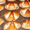 Все рогалики нужно разложить на противень и убрать в тепленькую духовку для подъема, примерно на тридцать минут. Обязательно во время подъема и выпечки в духовке должна находиться миска. После подъема рогалики промазать водичкой и выпекать около двадцати минут, при ста восьмидесяти градусов. Приятного аппетита.