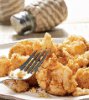 Есть и другой способ приготовления оладьей из цветной капусты, правда, они будут больше похожи на котлетки. Если, к примеру, половину муки заменить манной крупой. Добавить еще жареный лук репчатый. Замесить тесто немного покруче, чем на оладьи и сформировать из этой массы котлеты, которые запанировать в панировочных сухарях. Приятного аппетита.