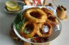 Для тех, кто любит морепродукты мы предлагаем великолепный рецепт приготовления фаршированных кальмаровых колец! Итак, как приготовить фаршированные кольца кальмаров?Понадобится: 2 крупные тушки кальмаров, 1 яйцо, 1 луковица, 1-2 моркови, 150-200 гр разноцветного болгарского перца (допускается и замороженный), 150 гр мидий, 70 гр томатной пасты, 1 ч. ложка карри, растительное масло, 100 гр муки, соль, зелень, листья салата, оливки, креветки и мидии для украшения.