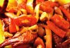 Подготовить начинку. Для этого грибы нажарить. Перец сладкий необходимо порезать кубиками и обжарить. Затем соединить грибы и перец, добавить натертый сыр. Все размешать.