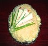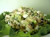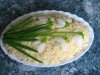 Соединяем в одной миске яйца, лук и укроп, печень трески, рис. По вкусу солим и перчим салат. Заправляем его майонезом либо же сметаной.
