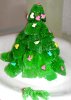 Каждый полукруг сворачиваем в виде конуса и склеиваем. Низ конуса надрезать, концы слегка загнуть. Так елочка получится пушистой.