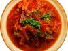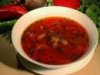 а)красные — готовят из капусты, картофеля, моркови, лука, петрушки, укропа и свеклы, которая придаёт борщу темно-красный цвет. Сегодня красные борщи варят на мясокостных рассолах, хотя исторически он был простым блюдом крестьян и мясо ложили только на праздники. Заквашивают борщ квасом из столовой свеклы, лимонной кислотой, уксусом, свежими помидорами или пастой из них.