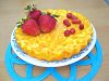 Выпекать запеканку мы будем в специальной форме. Можно испечь одну большую запеканку, или же несколько маленьких. Формочку необходимо смазать сливочным маслом. Выкладываем тесто (не до верха). Затем на верх теста выкладываем замороженные вишенки. И пальцем как бы утрамбовываем вишенки в тесто.