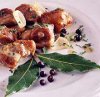 Лук нарежьте кольцами, савойскую капусту - соломкой. Добавьте к мясу шалфей, лук, лавровые листья, савойскую капусту, обжарьте. Полейте мясо граппой, выпарите.