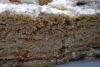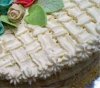 Необходимо еще тепленькие коржи пропитать сладким кофе и порезать на кусочки, затем каждый кусочек нужно разложить на блюде, все время чередуя шоколадный, ореховый и белый, затем обильно смазать кремом, следующий опять такой же ряд, далее опять крем. Готовый тортик нужно поставить на холод для пропитки. Приятного аппетита.