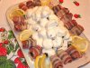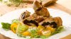 Бекон в этом случае нужен для того, чтобы сохранить сочность курного мяса – мясо куриной грудки слегка суховато. Основной же вкус блюду придает начинка, которая прячется в грудке – кусочки чернослива и сыр. Ингредиенты: 4 филе куриной грудки, 150 грамм сметаны, 3 столовых ложки кетчупа, 10 – 12 ломтиков бекона, 10 – 12 штук чернослива, 100 грамм сыра, 80 грамм грецких орехов и растительное масло.