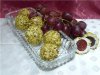 Теперь из сырной массы скатываем совсем небольшие шарики, которые затем мы будем помещать внутрь чернослива. Шарик обкатываем в миндале измельчённом и заполняем каждую черносливу таким вот шариком.