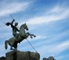 В результате, все завершилось благополучно и колонна мирно поплыла в Петербург, с помощью трех пароходов, которые ее тащили на буксире. По приезду в город, из гранита высекли готовую колонну для памятника, которая оказалась весом под шестьсот тонн. Поднимали ее на постамент свыше двухсот человек в течение ста минут.