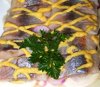 Это конечно не селедка под шубой, но для разнообразия приготовить хотя бы один раз стоит. Блюдо легкое в приготовлении, а состав продуктов такой, что закуска на столе долго не залеживается и исчезает одной из первых. Ингредиенты: филе одной сельди, две картофелины, два помидора, две средние луковицы.