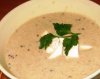 Затем содержимое необходимо перелить в блендер, добавить мелко нарезанную мяту и сливки, затем хорошо все измельчить. Суп-пюре перелить в кастрюлечку и прогреть. Подавать суп-пюре со сметанкой и мелко порезанной мятой. Приятного аппетита.