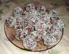 Берём немного массы, закладываем внутрь орешек и ладонями формируем шарик. Затем шарик обваливаем в стружке кокоса. Так лепим и остальные конфетки.