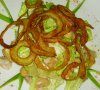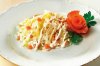 Рис необходимо отварить и сварить до полной готовности в солёной воде. Лук и морковь необходимо почистить, порезать мелко и обжарить на сковороде на растительном масле.
