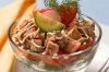 Готовую горбушу достаём из духовки, перекладываем на блюдо. Украшаем лимоном, оливками и зеленью.