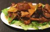 Грибочки моем и крупными кусками нарезаем. Немного обжариваем их на сильном огне с растительным маслом. Затем перекладываем грибы к утке.